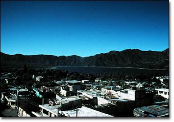 Both Diego and Nicolás Chavez suggested to me that while there are several important cave shrines around Santiago Atitlan, the niches on the altarpiece refer to the most sacred of local caves called Paq'alib'al, meaning "at the place of revelation or appearance," located in the mountains to the southwest of town. Nicolás described the cave in this way: "All the great saints and nuwal ancestors live in Paq'alib'al. Their spirits live there in the center of the mountain. This is also where the south wind is born. Strong rains come from this cave because that is where the clouds are formed. There is always the sound of wind coming out of the cave because this is where the ancients live. The entrance is guarded by two pumas and two jaguars and is adorned with abundant fruits such as corozos, bananas, melacotones, plantains, zapotes, cacao and pataxtes to show that the sacred ancestors are present inside and that they have power to give life and much fruit. Inside Paq'alib'al is a gigantic snake one meter thick and fifty meters long that watches over the saints. "Near the cave in a small ravine is a great tree where angels rest when it rains and inside the branches are clouds. The branches are covered with squirrels and birds. A peccary circles the trunk when it is about to rain because clouds and the first rays of dawn begin at this tree. Tremors shake the earth every five minutes there because this is where the ancestors live when they leave Paq'alib'al. My great grandfather didn't believe in this tree and wanted to use its wood to build a canoe and for firewood. When he began to cut the tree, it bled. Immediately he had a stroke and he remained half-paralyzed for the rest of his life. Another man who didn't believe in the tree tried to climb it and became a monkey." |