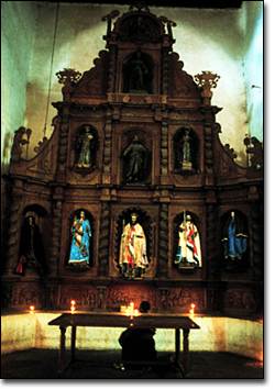 For many Atitecos, the central altarpiece at Santiago Atitlan is not merely a symbolic representation of the mountain of creation. It is a focal point for regenerative power, charged with the same animative presence that gives the saints in their niches the ability to bestow divine blessings. Ceremonies conducted before it related to rebirth are not therefore symbolic, but genuine creative acts in which time folds inward on itself to reveal the actions of deity in the primordial world. | ![]()