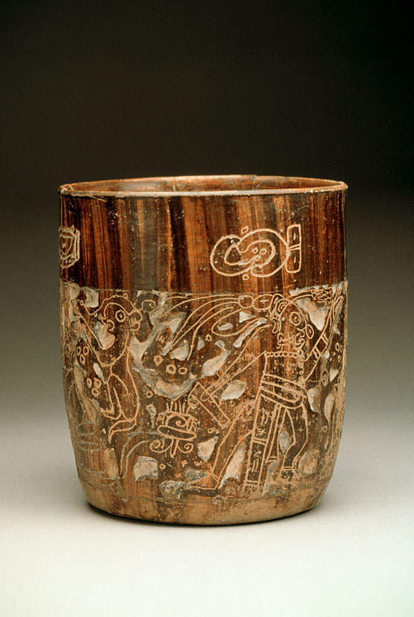Carved and etched vessel Maya Classic period (300-900 A.D.) Unknown Clay with brown pigment N/A National Museum of Anthropology, Mexico. Photo © Jorge Pérez de Lara |