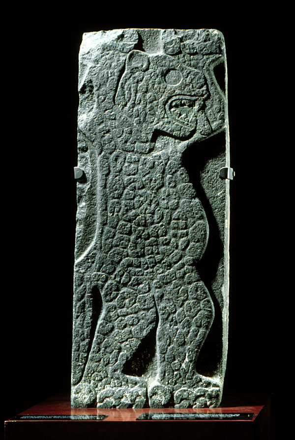 Stone slab with the depiction of a standing jaguar Toltec Early Post-Classic period (900-1100 A.D.) Tula, State of Hidalgo Volcanic stone N/A National Museum of Anthropology, Mexico. Photo © Jorge Pérez de Lara |