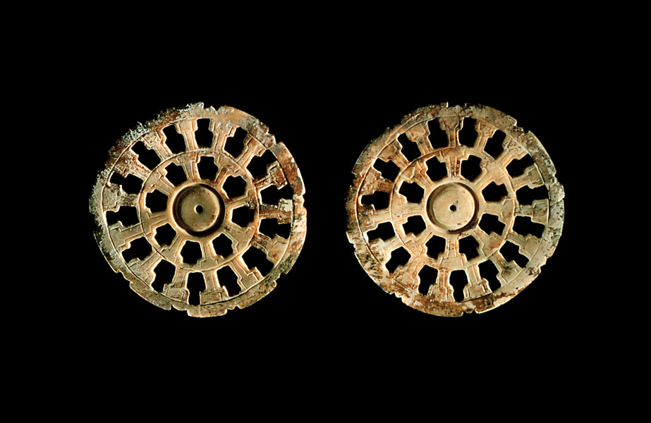 Earflare frontals West Mexico Classic period (300-900 A.D.) State of Michoacán, Mexico Shell 6.2 cm. National Museum of Anthropology, Mexico. Photo © Jorge Pérez de Lara |