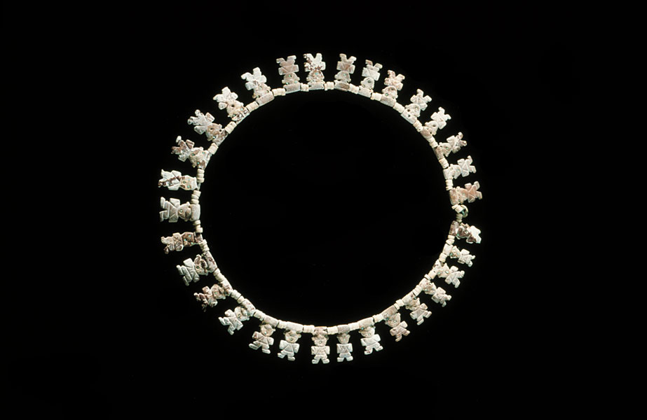 Necklace made of small anthropomorphic figures West Mexico Classic period (300-900 A.D.) San Gregorio, State of Michoacán Shell 17.4 cm. (diameter) National Museum of Anthropology, Mexico. Photo © Jorge Pérez de Lara |