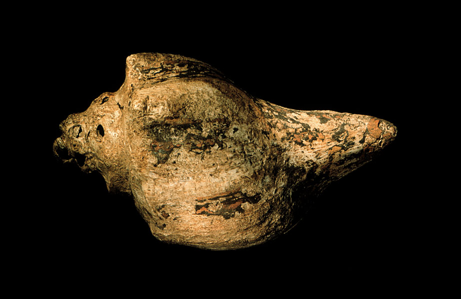 Conch trumpet West Mexico Late Pre-Classic to Early Classic periods (100 B.C.- 300 A.D.) Teuchitlán, State of Jalisco Conch 23.1cm. National Museum of Anthropology, Mexico. Photo © Jorge Pérez de Lara |