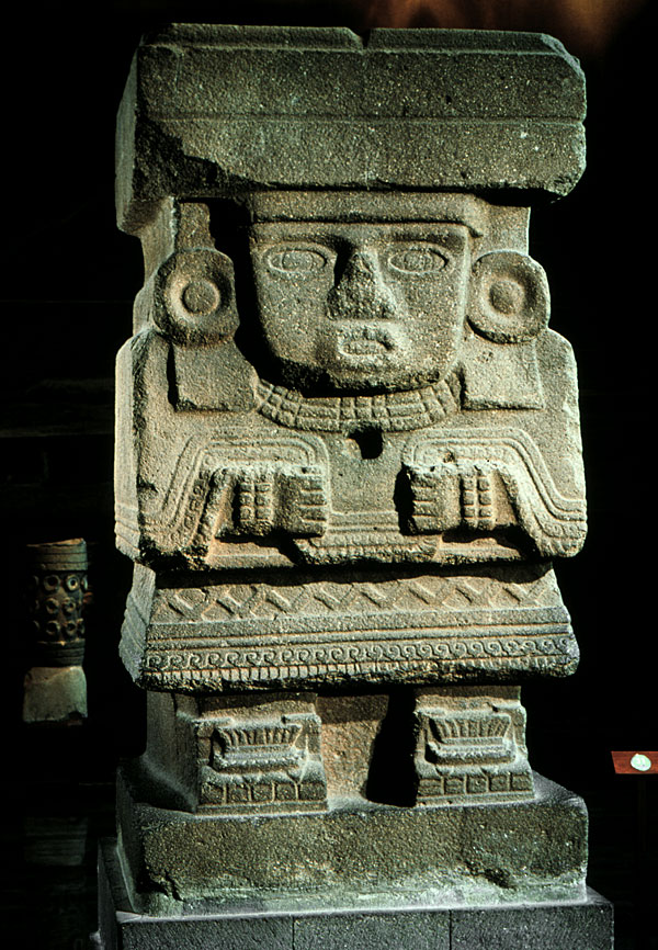 prev - home - index - next This sculpture was found near the so-called Pyramid of the Moon in Teotihuacan and, although some authors think it is a sculpture of the water goddess elsewhere known as Chalchiuhtlicue, its identification is by no means certain. Sculpture of a female, possibly a deity Teotihuacan Early Classic (150-300 A.D.) Teotihuacan, State of Mexico Volcanic tuff 3.19 x 1.65 m. National Museum of Anthropology, Mexico. Photo © Jorge Pérez de Lara |