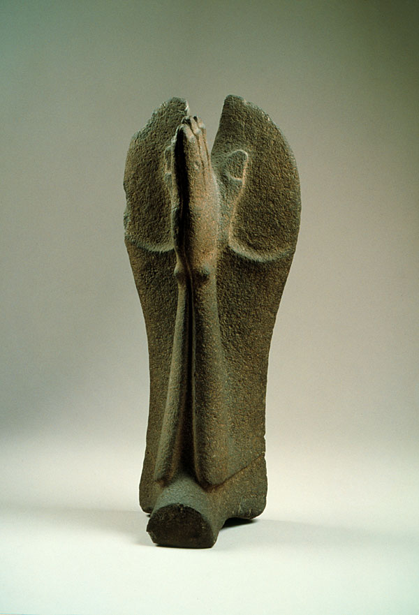 prev - home - index - next The long, curving objects commonly known as "palmas" have a great variety of shapes and ornamentation, although they are all probably ritual depictions of ball-playing attire, originally made in wood. This is a particularly forceful and imaginative piece, although its meaning remains unknown. "Palma" in the shape of human forearms and hands Central Veracruz Middle to Late Classic (500-900 A.D.) Unknown Stone 38 x 15 cm. National Museum of Anthropology, Mexico. Photo © Jorge Pérez de Lara |