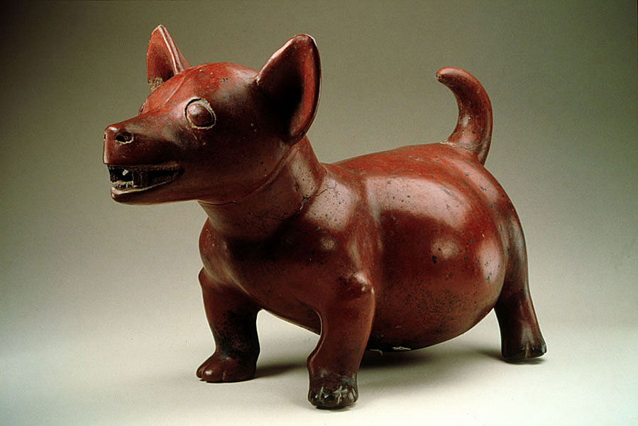 Some of the most popular figurines from Colima are the numerous representations of dogs, depicted in all sorts of activities: fighting, grooming themselves, standing or merely sleeping. Invariably, these dogs are short-legged and appear to be excessively fat. This may be due to the fact that Mesoamericans were no strangers to using dogs as food and they even fattened them just for that purpose.