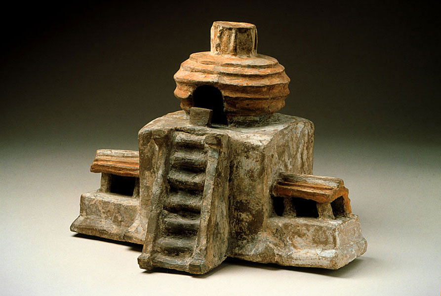 Temple model Nayarit cultures Early to Middle Classic (200-600 A.D.) Amapa, State of Nayarit Clay with vestiges of white and red pigments 23 x 32 cm. National Museum of Anthropology, Mexico. Photo © Jorge Pérez de Lara |
