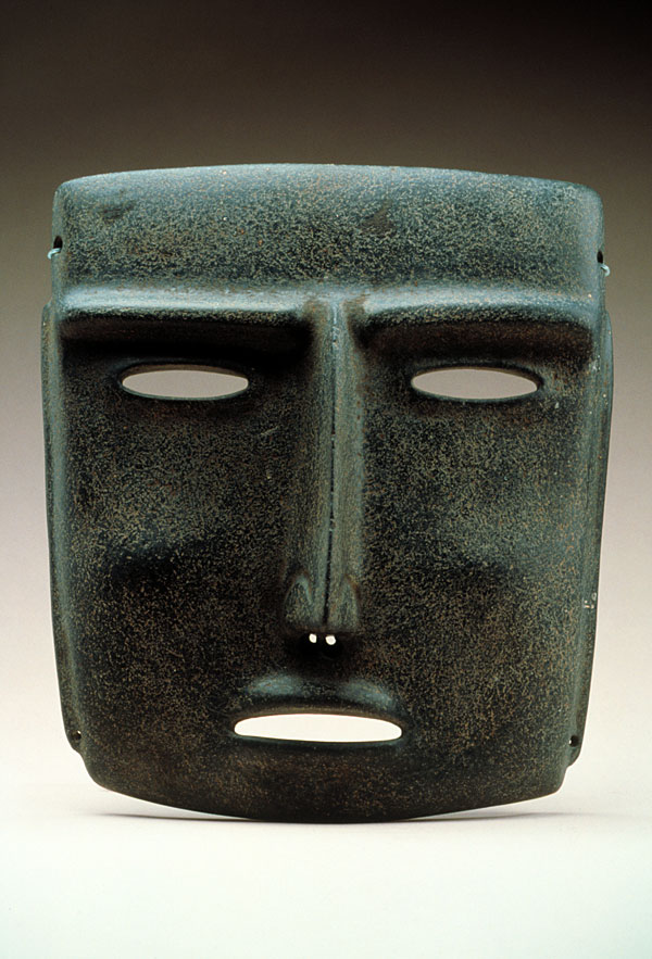 Mask Mezcala Middle Pre-Classic (400-100 B.C.) Mezcala river basin, State of Guerrero Greenstone 21.4 x 18.6 cm. National Museum of Anthropology, Mexico. Photo © Jorge Pérez de Lara |