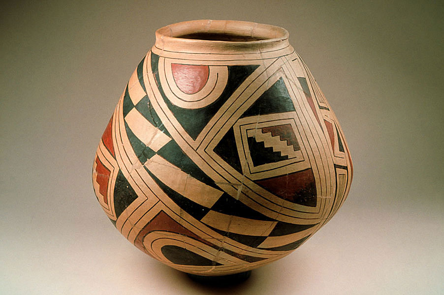 A very good example of a ceramic tradition that was characterized by its complex geometry and limited color palette that rarely ventured beyond the basic scheme of red and black over a cream-colored background.