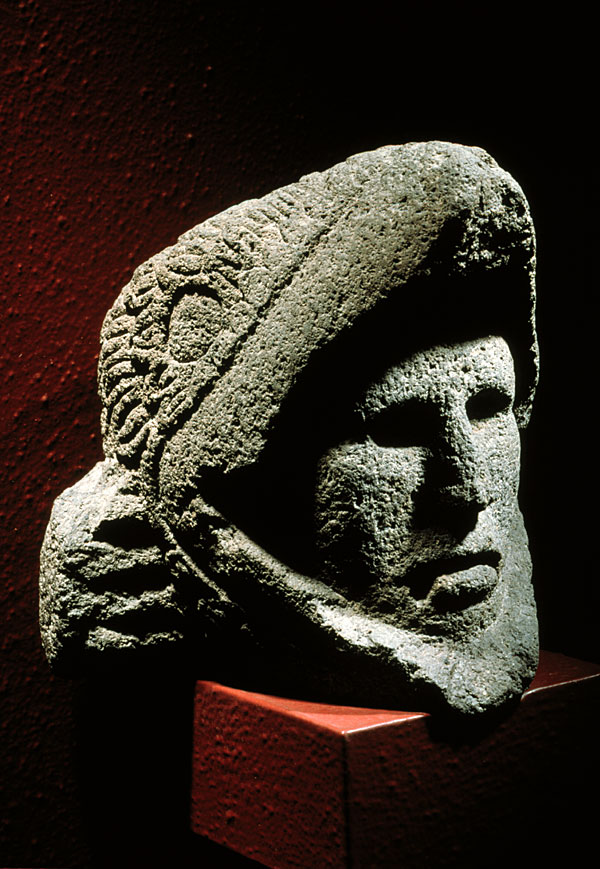 Head of a warrior of the order of the eagles Mexica (Aztec) Late Post-Classic (1325-1521 A.D.) Texcoco, State of Mexico Volcanic tuff 32 x 30 cm. National Museum of Anthropology, Mexico. Photo © Jorge Pérez de Lara |