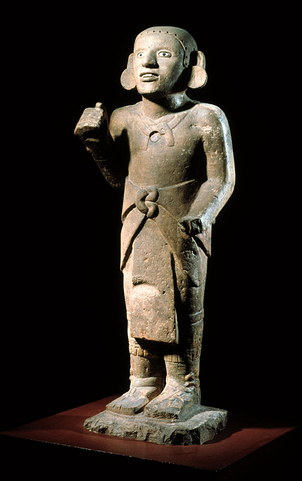 Statute of Xiuhtecuhtli Mexica (Aztec) Late Post-Classic (1325-1521 A.D.) Coxcatlán, State of Puebla Stone 111 x 36 cm. National Museum of Anthropology, Mexico. Photo © Jorge Pérez de Lara |
