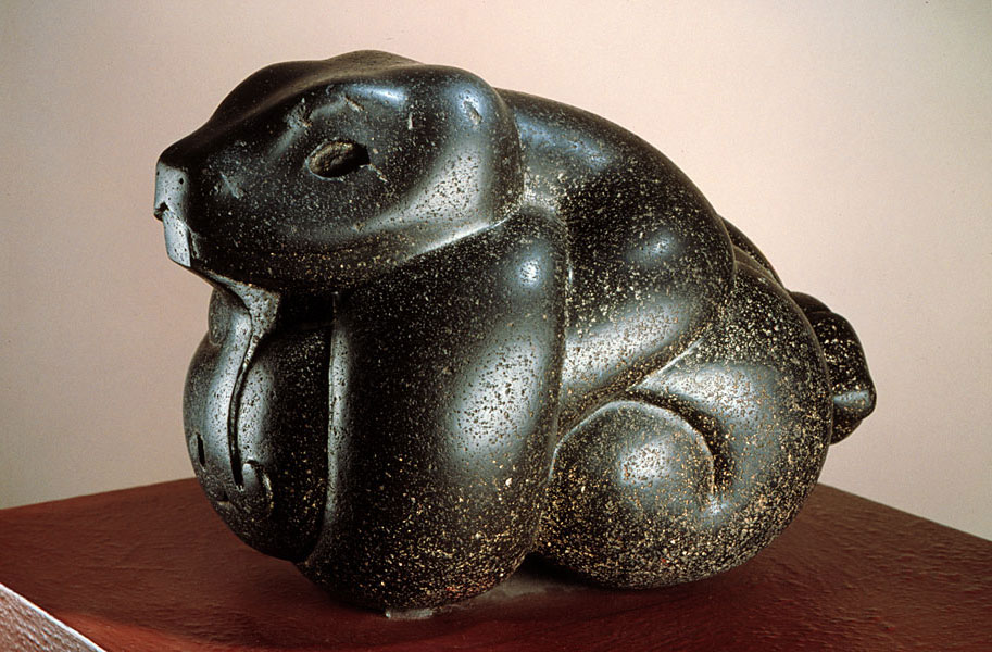 Beautiful rendering of a coiled rattlesnake. The plasticity with which the artist rendered the coiled snake as a knot does not detract from the realism of the theme, while it introduces a wonderful play of volume and texture, of light and shadow.