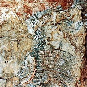 House A-D. Cap of Sun God is at extreme left of jaguar tail.