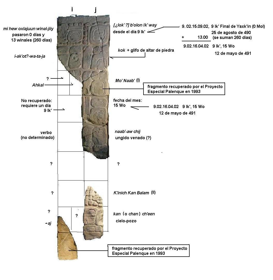 Temple XVII Tablet, glyphs I1-J9: reading by Guillermo Bernal Romero.